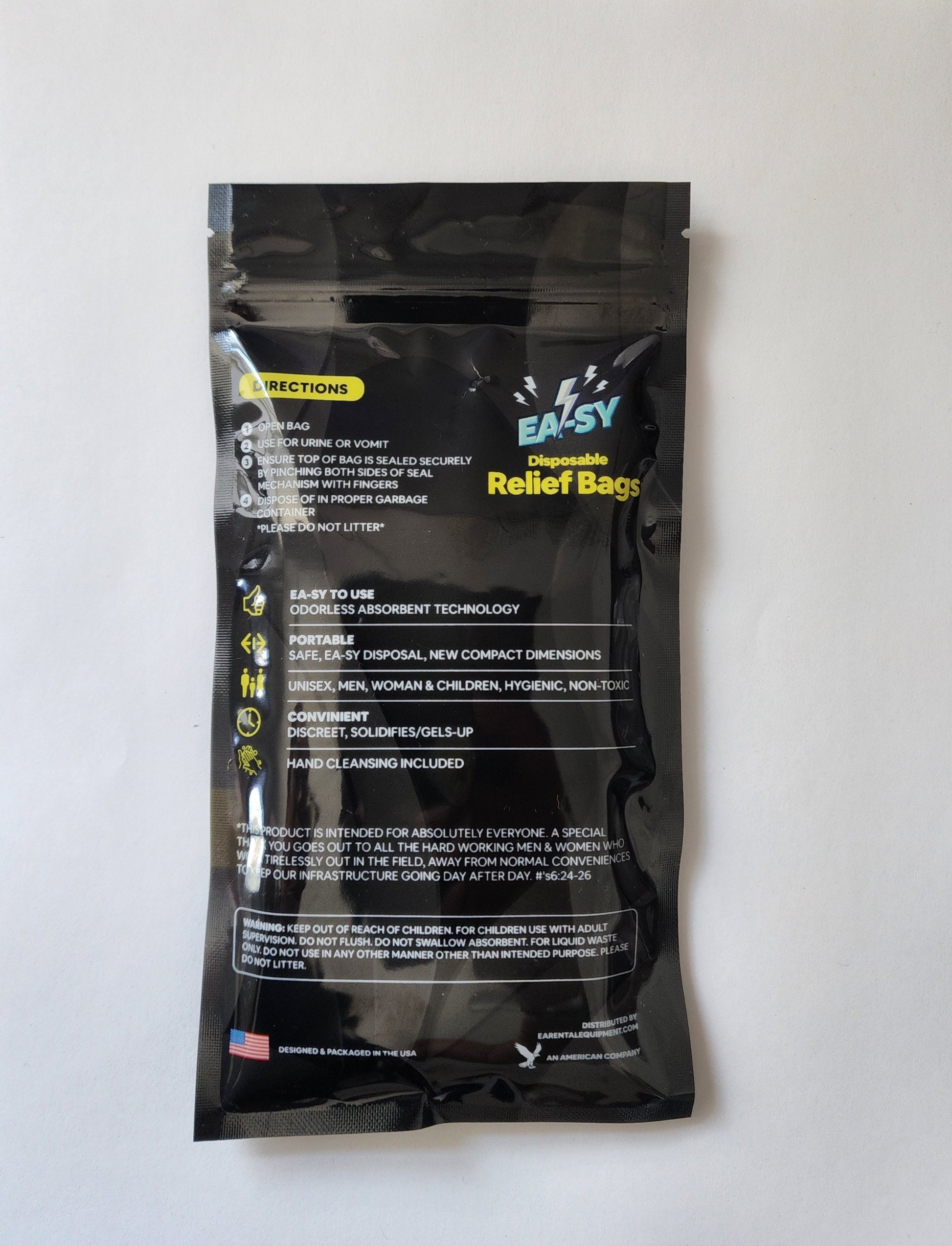 When nature calls and no restroom is in sight, Easy Go Bags provide a fast, hygienic, and discreet solution. Designed for both urine and vomit, our disposable bags turn liquid into a solid gel, seal securely, and can be safely thrown away. Compact and portable, Easy Go Bags are your reliable backup—whether you're on the road, at work, or out in the field.